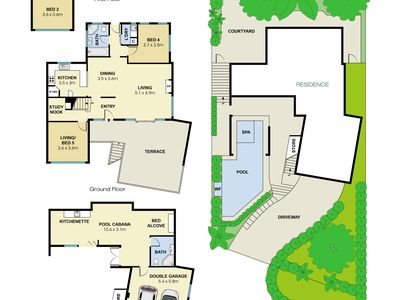 Flowing over three levels with a studio/guest retreat or poolside cabana occupying the ground floor, its beautifully styled interiors and terraces have been cleverly arranged to capture the views from every possible angle.